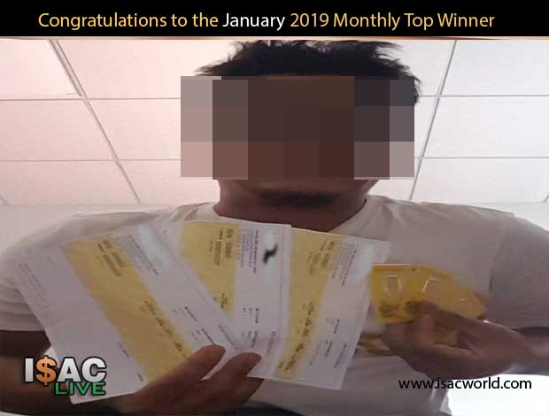 I am ISAC015587 are GLAD to tell all members that in TWO MONTHS IN A ROW once again I am the TOP WINNER for January 2019... Big thanks to ISAC becoz ISAC ARE TRULY GENUINE WEBSITE AND THE BEST ONLINE GAMES IN MALAYSIA... Nothing much can say except for ;